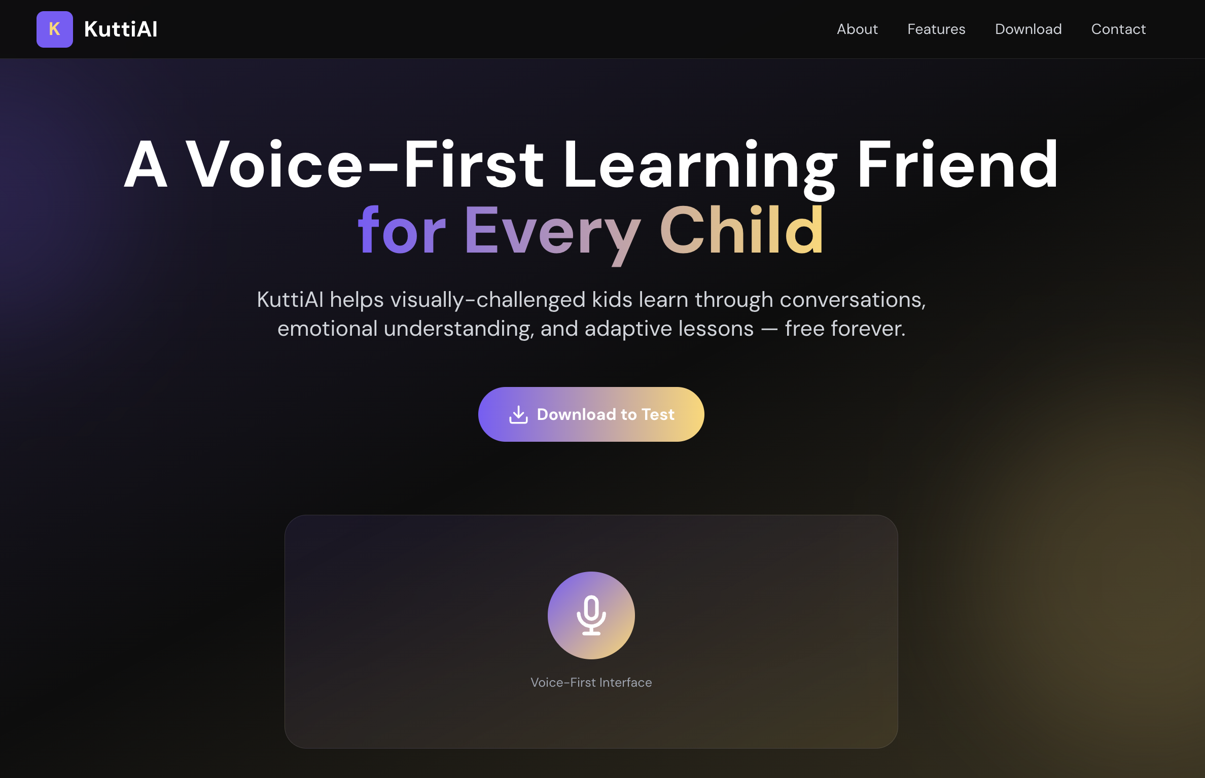 Every design decision in Kutti AI prioritizes accessibility: